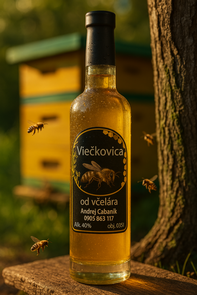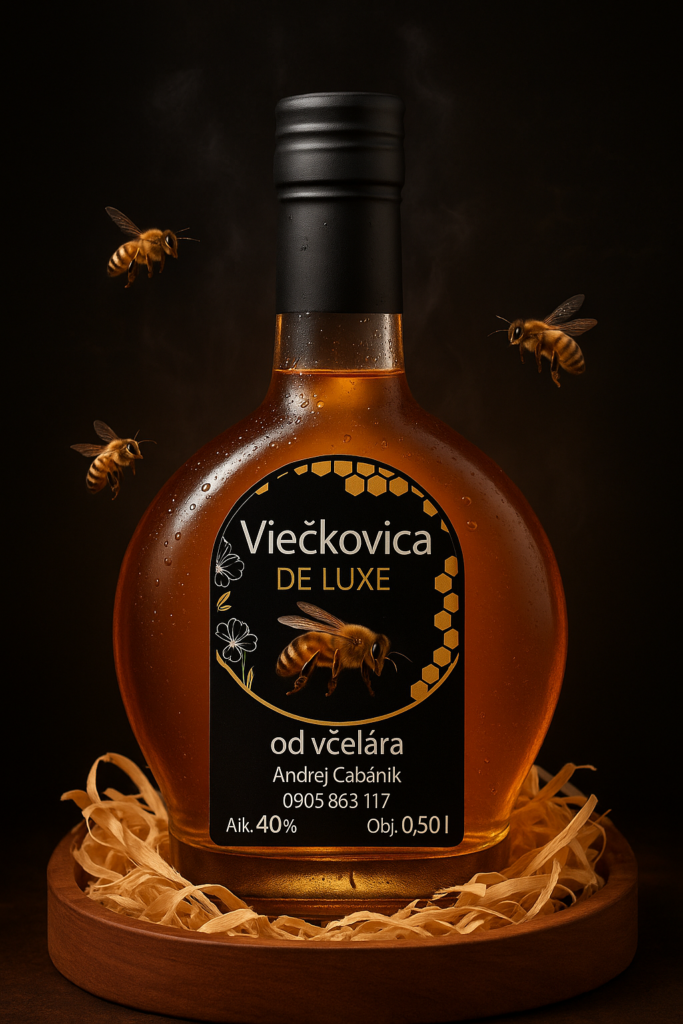 Viečkovica DELUXE – Vychutnajte si tento jedinečný 40% alkoholický nápoj zlatistého odtieňa s medovou chuťou, ktorá je výsledkom dozrievania v dubovom sude. Pre včely je med kľúčový, a preto sa za milióny rokov naučili ho chrániť špeciálnym spôsobom. Okrem medu obsahuje Viečkovica DELUXE aj koreň z horca a zmes bylín, ktoré jej dodávajú jemný nádych sladšieho koňaku.